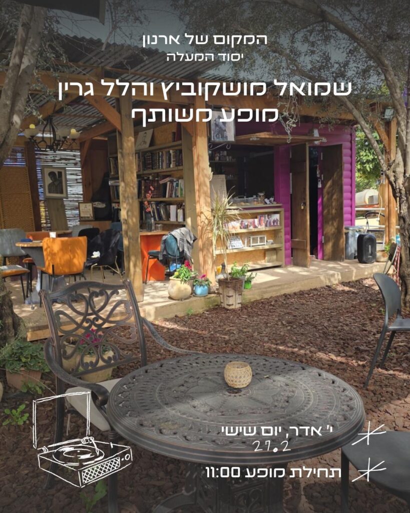"גן ארנון" ובית הקפה הנמצא בו, הוא מקום למפגש רגוע ונעים, מקום של חיבור ואהבה. עם מפגשי ג'אם ומופעי מוזיקה לכל המשפחה.